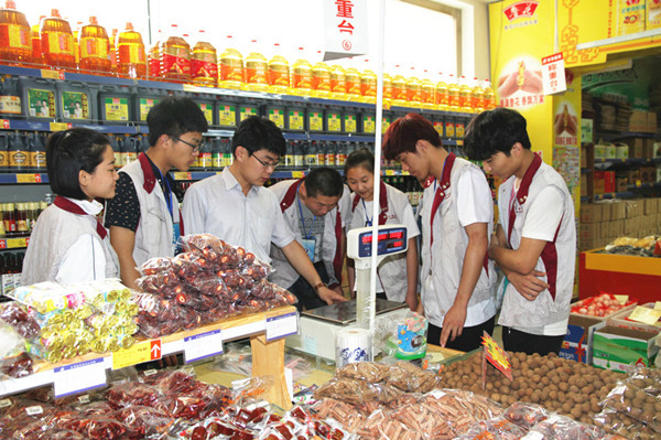 經(jīng)過店長彭娟和各位主管的悉心教導(dǎo),學(xué)生們基本能適應(yīng)理貨、打稱簽、收銀、驗收、服務(wù)臺等各項基礎(chǔ)性工作。實訓(xùn)提高了學(xué)生的實踐能力和應(yīng)變能力,達到了較好的效果。店長彭娟表示,經(jīng)貿(mào)學(xué)院店作為學(xué)區(qū)示范店將一如既往地為同學(xué)們做好實習(xí)服務(wù),為學(xué)生的實習(xí)工作提供良好的環(huán)境和教學(xué)資源。