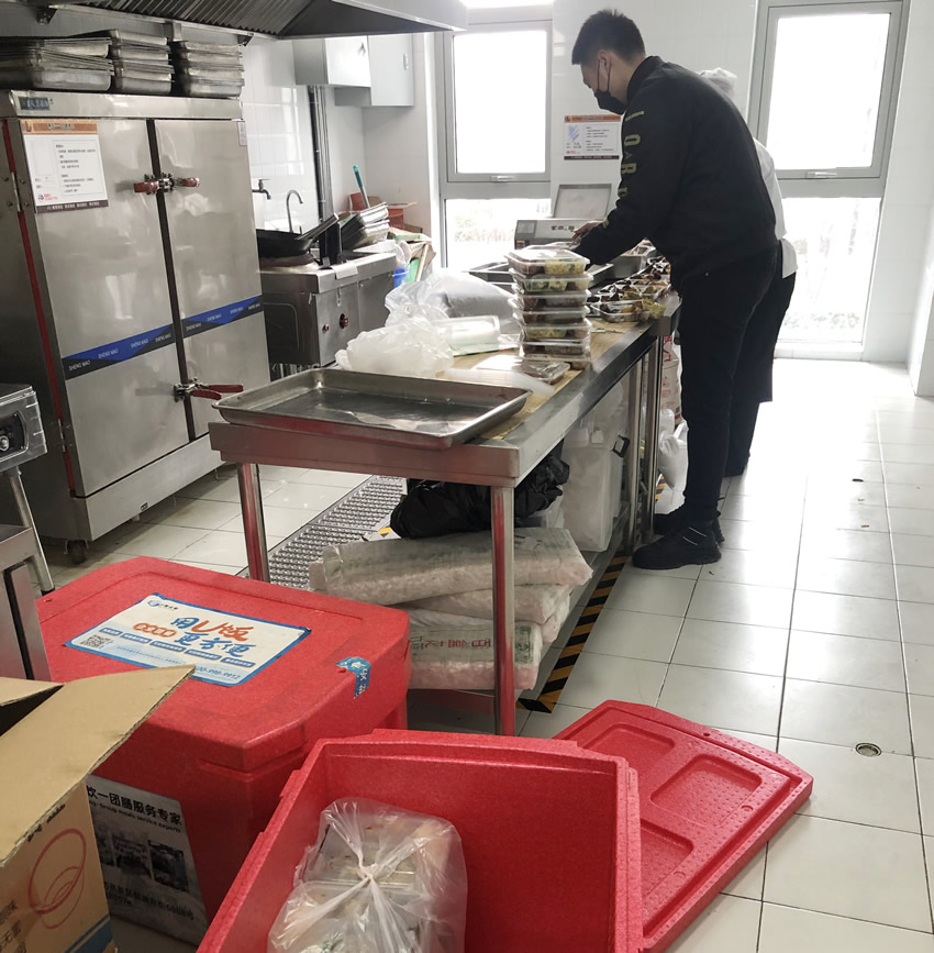 疫情突襲,堂食受到極大影響,外送成為了餐飲項目的主流趨勢,再加上超市的園區(qū)生活必需品配送服務,他們三人不得不在人員緊缺的情況下全員化身店小二,每天奔跑在園區(qū)送貨的路上。于洋,負責整個項目的線上維護及二樓餐飲項目所有事務,同時還擔當著超市收銀員替補,是外送店小二中的主力擔當。堂食有所限制后,園區(qū)很多單位改成了訂餐送貨上門。無論是面對線上群里信息不斷、私聊信息滿屏的情況,還是線下送貨頻繁的局面,他都能井然有序地一一解決。這真是讓我對他刮目相看。一個二十多歲的大學生,家里的獨生子,白白凈凈、高挑帥氣,宛若一個玩世不恭的“公子哥”,以為徒有其表,沒想到干起活來這么利落,任勞任怨,毫無怨言,臉上永遠洋溢著天真的笑容。