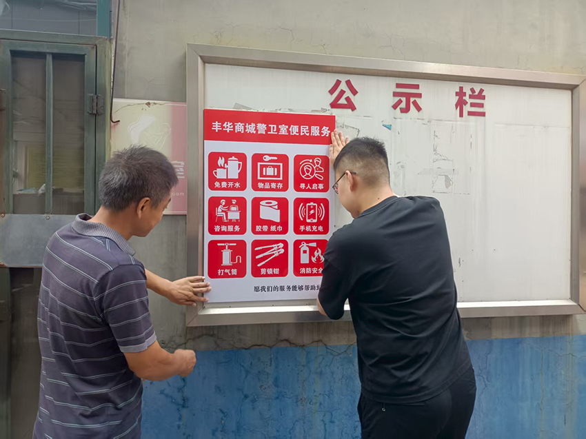 9月17日,安保部主動靠前服務(wù),粘貼便民服務(wù)牌,清晰標注應(yīng)急服務(wù)及常見問題指引等關(guān)鍵信息,從安全守護向服務(wù)保障延伸,讓消費者在需要幫助時能快速獲取支持。